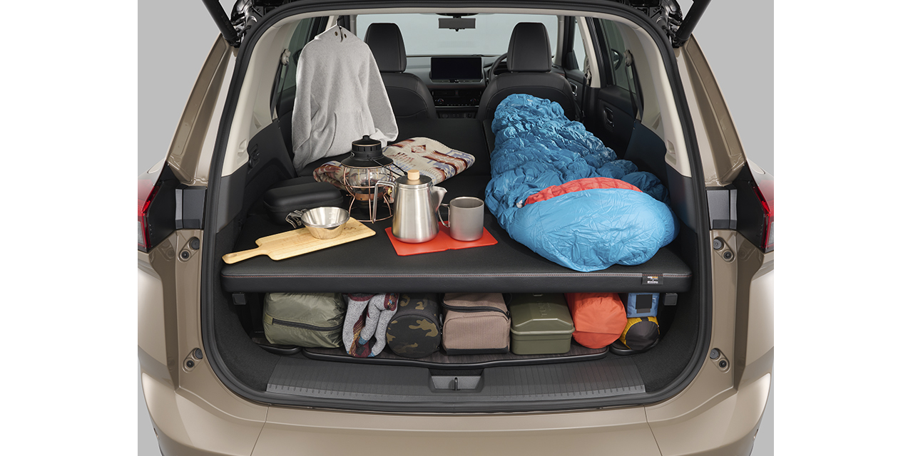 荷室に便利な収納が増え、雨などで濡れても安心な防水機能付きのシートやサーフボードやキャンプグッズをしっかりと固定できるブラックルーフレールが装備されています。